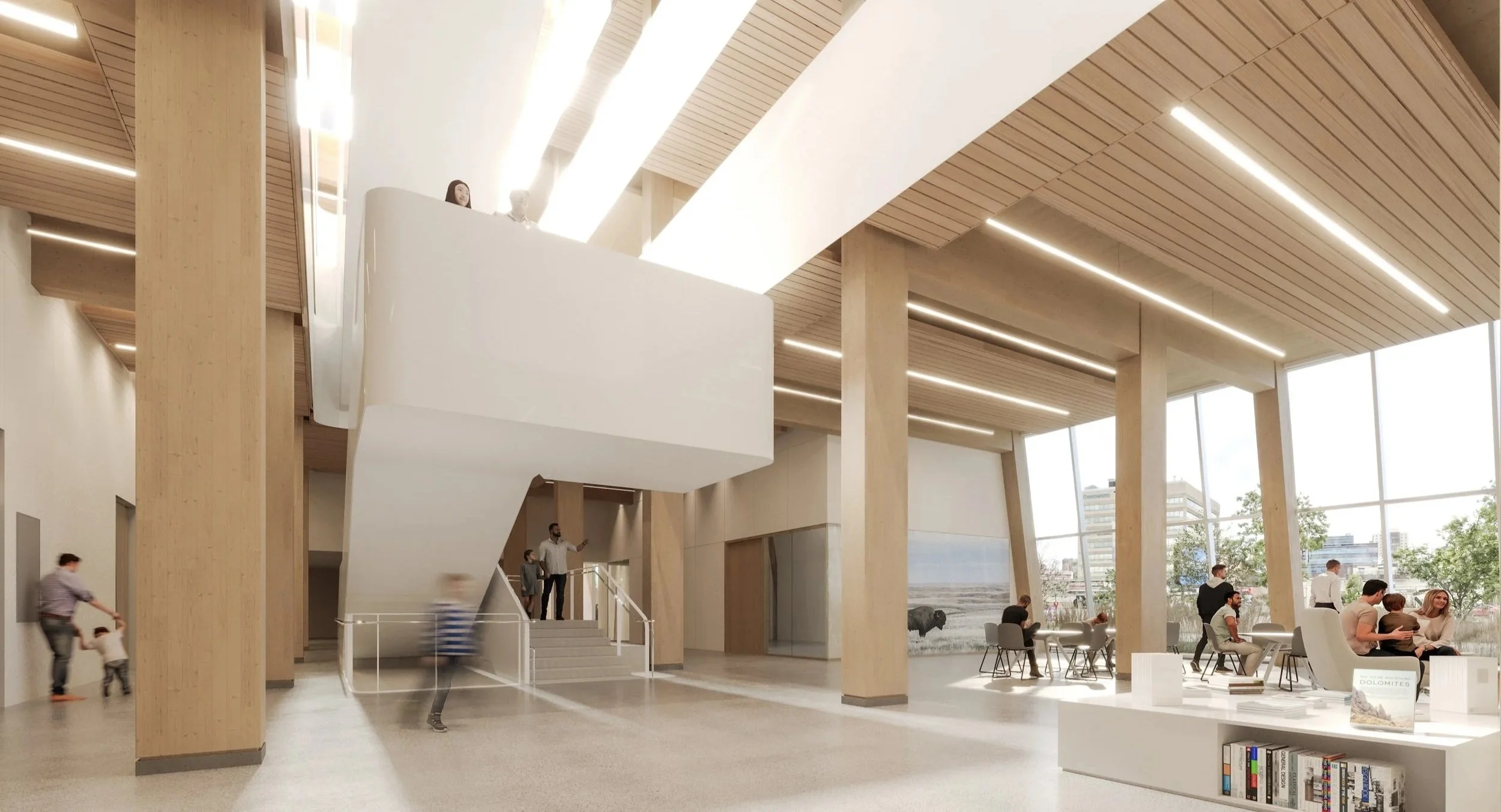 We design community spaces where learning unfolds naturally. Rather than traditional classrooms, learning is supported through reading rooms, maker spaces, studios, performance areas, and shared commons. Clear sightlines, intuitive wayfinding, and visible activity invite people to engage at their own pace, whether they are attending a program, developing new skills, or simply spending time in a space designed for discovery.